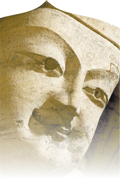 事实上,北魏时期的石雕佛像初造时眼珠均为黑彩绘制,尚不见镶嵌佛眼的做法。我们今天在云冈石窟许多佛像眼部看到的凹坑,往往出自后人加工。这些凹坑一般直接开凿在佛眼中部,破坏了原来的眼睑,有的凹坑内还残存着瓷质的佛眼珠。