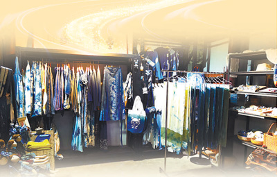 永康市墨时草木染非遗工坊产品展示室一角。