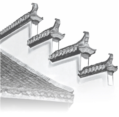 马头墙一景。