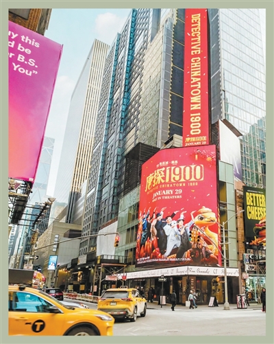 电影《唐探1900》海报亮相美国纽约时报广场。