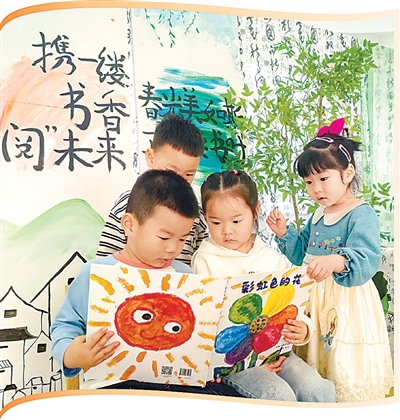 江西南昌市西湖区一家幼儿园的小朋友们在一起阅读绘本。